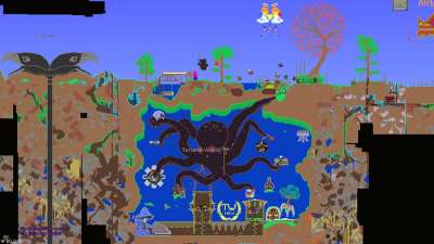 Спешите скачать игру Terraria через торрент и начинайте интересно проводить свободное время. В чём смысл игры? Вы управляете персонажем который оказывается на неизвестном ему острове. Вокруг ни одного знакомого и всё, что есть у героя, это меч, кирка и топор. Лес, расположенный вокруг таит в себе множество опасностей и поэтому первое, чем предстоит заняться, это постройка жилища. Для этих целей и пригодится топор для рубки леса и кирка для добычи минералов. В игре реализован крафтинг и из добытых ресурсов вы в итоге сможете создать массу предметов. Правда нужно знать Рецепт и иметь под рукой Верстак. Экспериментируя вы можете составлять рецепты изготовления уникальных вещей. К слову, существует ещё один способ добыть вещь. Это победить монстра или босса, а сражений с ними вам предстоит пережить немало. Игра радует простым управлением, интересным геймплеем и представляет пользователю полную свободу действий. Что ещё нужно для интересного время провождения?